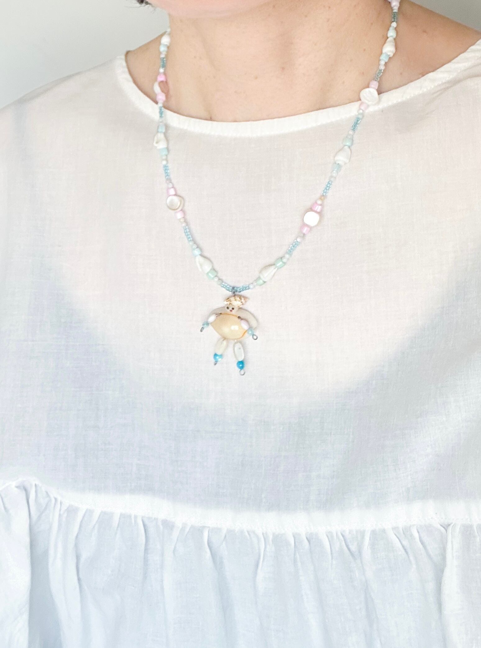 貝殻を使った海の妖精みたいなこのペンダントをネックレスにしました。